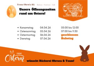 Ostersonntag haben wir von 7:00-11Uhr30 für euch geöffnet!
